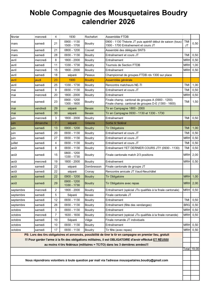 Nous répondrons volontiers à toute question par mail via l’adresse mousquetaires.boudry@gmail.com